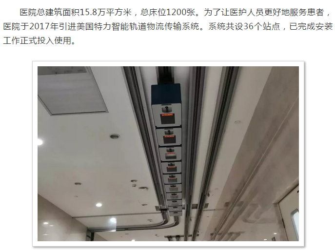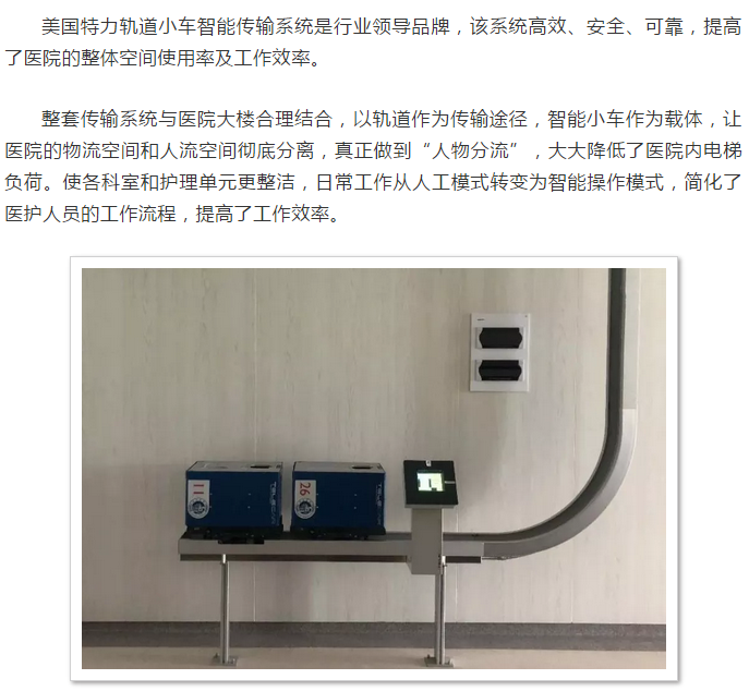 【案例展示】又一家醫(yī)院投入使用特力軌道小車傳輸系統(tǒng)