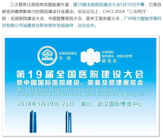 三大趨勢讓醫(yī)院物流智能潮升溫,第19屆全國醫(yī)院建設(shè)大會5月19日開幕